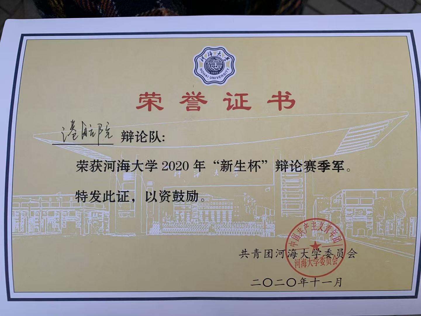 2020年11月7日,河海大学“新生杯”辩论赛决赛在江宁会议中心落下帷幕。金神赌场 辩论队获得季军,能电院辩论队、商学院(常州校区)辩论队分别获得本次比赛冠军、亚军。