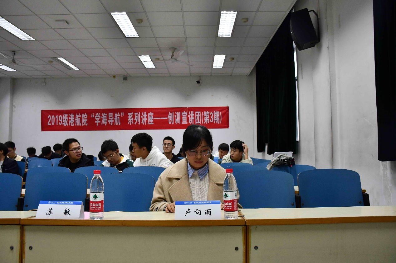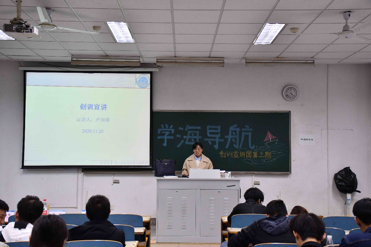 季小梅老师先向同学们介绍了河口海岸动力地貌过程与岸滩保护的科研方向,又向同学们传授创训经验,对有意向参加科研的同学提出了基本要求,让同学们设身处地的了解了创训。