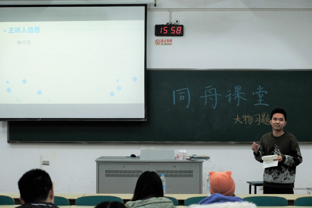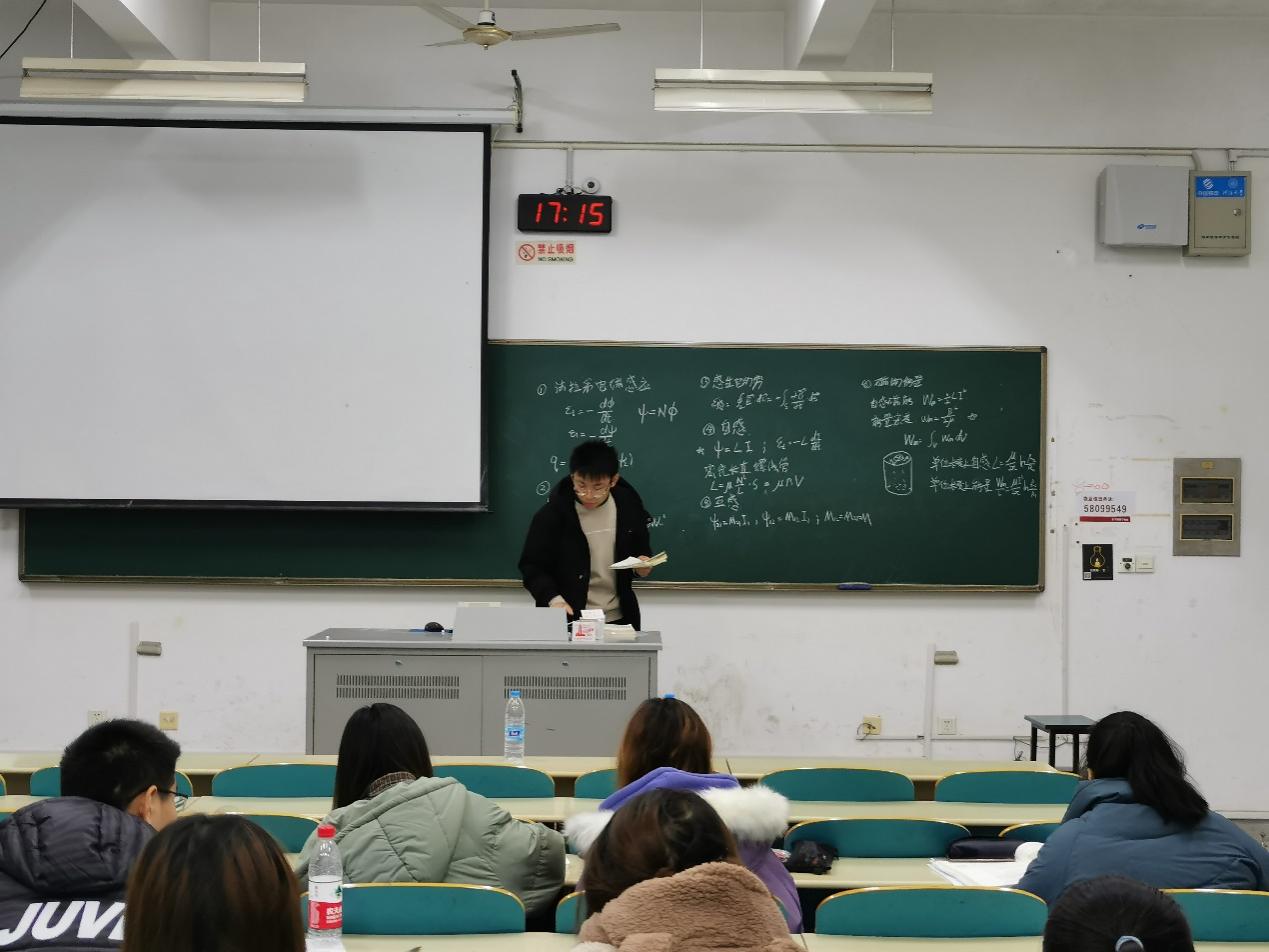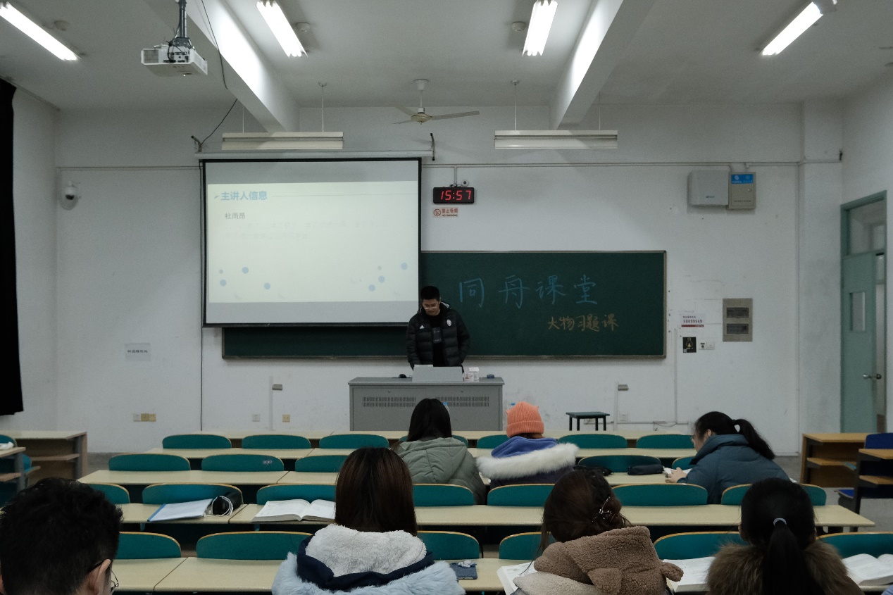 2020年12月8日,金神赌场 “同舟课堂”之大学物理习题课在江宁校区致高楼B104顺利举行。本次活动的主讲人是金神赌场 2019级唐梓淇和杜雨昂两位同学,他们分别就恒定磁场和电磁感应的一系列问题向同学们做了详细的解说。