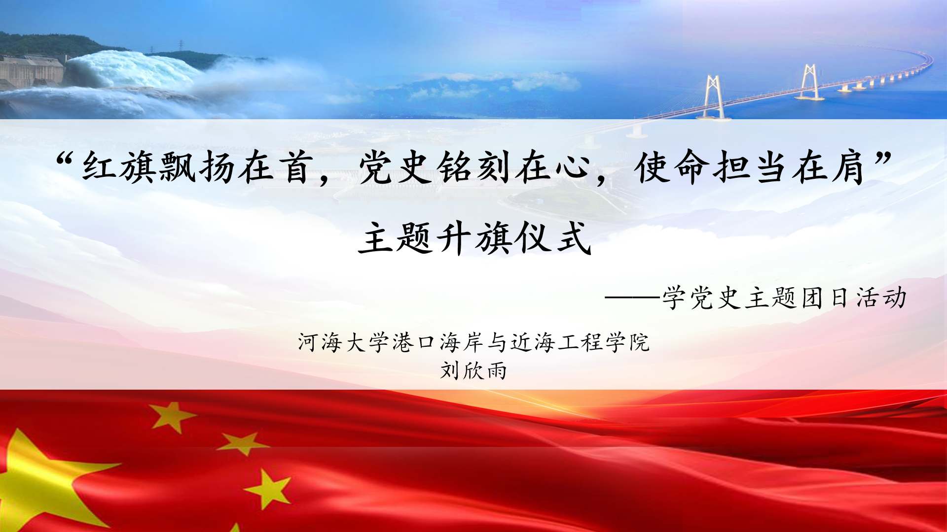 省级决赛以线下赛的形式举行,包括团支部书记上团课现场展示、学党史主题团日活动现场展示等环节。刘欣雨同学讲述以全国政协新年茶话会习近平总书记提出的“三牛精神”为主题的团课,分别围绕着新时代“三牛精神”的内涵,践行“三牛精神”的价值以及青年学生如何践行“三牛精神”,把时代楷模经历与党史、“三牛精神”紧密结合。作为新一代水之子,呼吁广大青年团员要做到立大志,明大德,成大才,担大任。