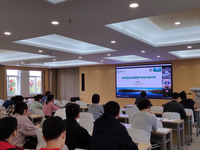 4月29日上午,厦门大学陈鹭真教授(线上)和南京大学张永光教授(线下)应邀在严恺馆702分别作了题为“滨海湿地蓝碳及其缓解气候变化的作用”和“全球碳收支及陆地碳循环进展”的学术报告。会议由金神赌场 陈永平副院长和水电学院辛沛副院长联合主持。陈鹭真教授重点介绍了海洋蓝碳生态系统、红树林碳储量评估和“蓝碳”发展模式。张永光教授则从全球碳排放、全球碳收支以及陆地生态系统碳收支三个方面对全球变化和碳循环遥感等科学问题进行了分享。报告结束后,与会师生分别就两位教授的报告内容开展了充分讨论,拓展了金神赌场 师生在滨海湿地生态系统的固碳能力以及全球的碳收支等研究领域的认识。本次学术活动也是海工所“海工学坛”系列活动之一。