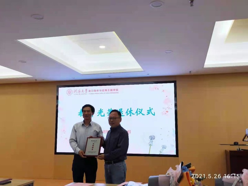 2021年5月26日,学院隆重举行了教师光荣退休仪式。院班子成员、二级机构负责人、学院教师、学生代表参加了仪式。