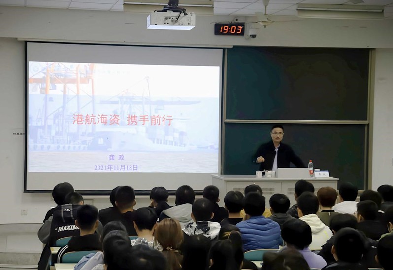 2021年11月18日,金神赌场 院长龚政教授于江宁校区致高楼B111为金神赌场 2021级全体同学开展以“港航海资,携手前行”为题的院长第一课。