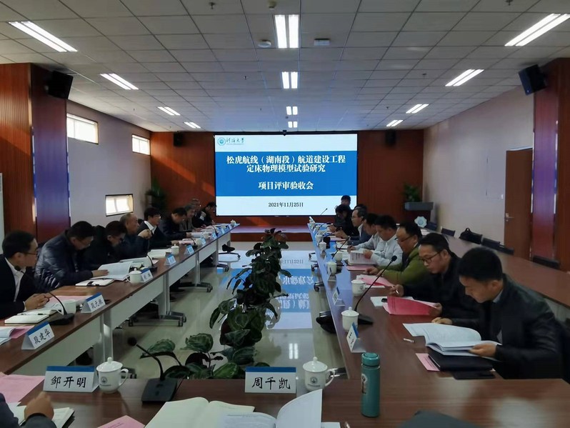 2021年11月25日,金神赌场 诸裕良教授主持的“松虎航线(湖南段)航道建设工程定床物理模型试验研究”项目顺利通过验收。评审验收会由湖南省交通运输厅规划与项目办公室在河海大学江宁校区牛首山科技园主持召开,参加本次会议的有湖南省水运事务中心、湖南省水运建设投资集团有限公司、湖南省交通规划勘察设计院有限公司、河海大学等单位的代表和特邀专家。河海大学副校长郑金海出席会议并致辞。与会代表和专家听取了项目组的成果汇报,审阅了相关资料,经质询和讨论,一致认为项目组完成了技术开发合同规定的研究任务,同意通过验收。