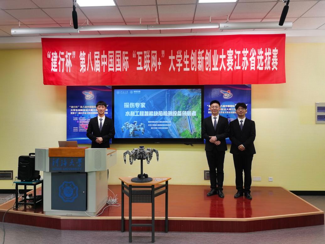 在主赛道本科生初创组,由张蔚、廖芳艺、林晨等老师指导,金神赌场 2018级本科生吕辉、2019级本科生杜雨昂、2019级本科生李昊、2020级本科生陈家骥等同学共同完成的创新创业项目《探伤专家——水利工程智能缺陷检测设备领航者》获得大赛一等奖。