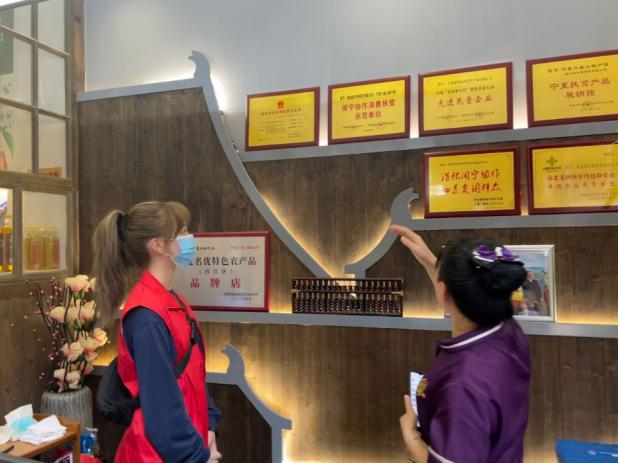 实践团福建小分队在宁夏特产展示馆里也对闽宁镇民众的艰苦奋斗史进行了学习和记录,福建技术人员对宁夏当地的水土和社会耕种技术进行了详尽的调研,制定了完善科学的对口帮扶计划——不仅让民众吃穿不愁,还要让民众凭借自己的双手富足起来,虽远隔千万里但互相扶持的山海情长存心中。
