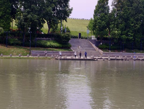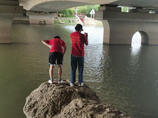 中华门附近秦淮河支流 团队成员在秦淮新河进行调研