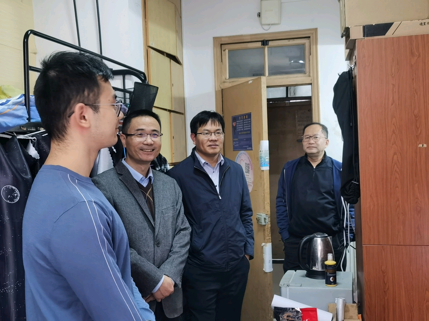 张蔚副院长、陈永平副院长在本科生2019级、2020级辅导员廖芳艺、林晨的陪同下,前往西康路校区2舍、8舍、9舍学生宿舍,走访学院大三、大四本科生,询问学生目前的学业状态,检查学生的宿舍消防安全,关心学生在校的生活情况,了解学生的生涯规划、未来计划,指导学生合理分配时间,有效推动学习、升学、就业进程。