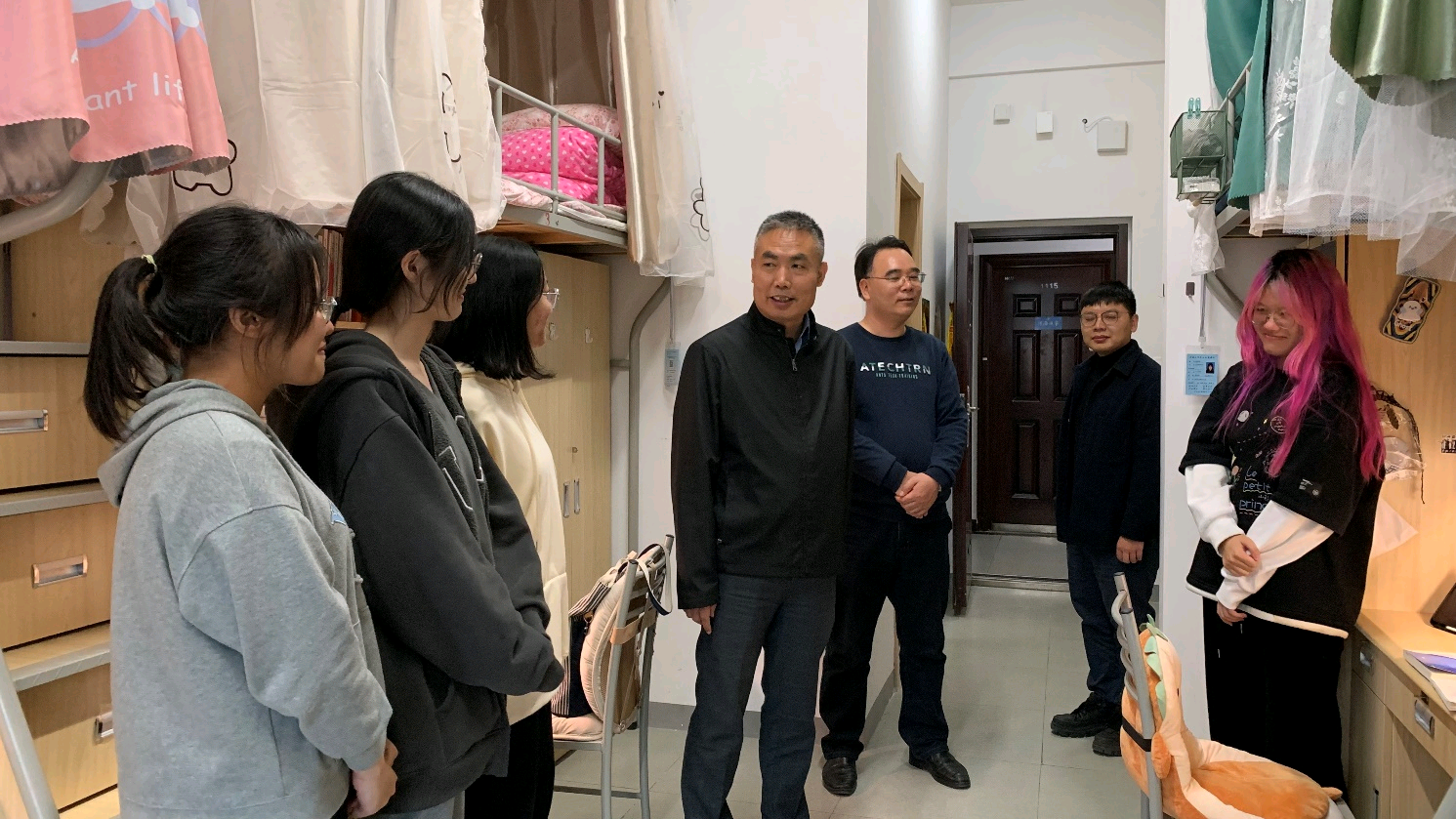 为贯彻落实立德树人根本要求,加强学院党政班子领导联系学生工作。根据学校工作要求,11月4日下午,学院领导分组走访学生社区,了解关心学生思想动态、学业就业、安全稳定等方面情况。