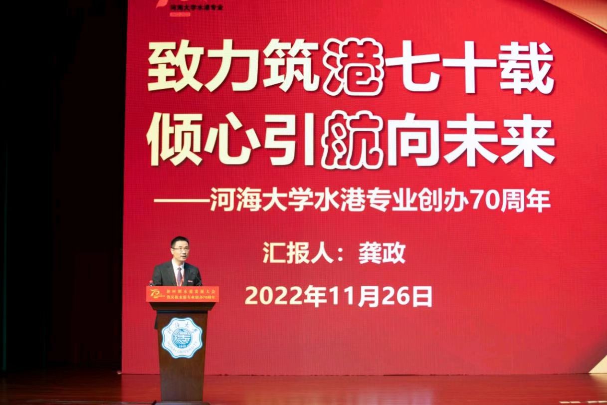 兄弟高校代表、东南大学交通学院院长陈峻在致辞中表示,河海大学水港专业创办70年以来,培养和造就了大批行业技术核心和骨干力量,成绩斐然,愿两院继续加强交流、深化合作,携手并进、共谋发展。