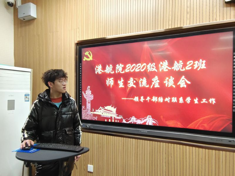 12月5日,2020级港航2班在工程馆116召开师生交流座谈会。金神赌场 党委书记张俊基、班导师张研教授、辅导员林晨老师出席活动。班会由班长缪宇亮主持。