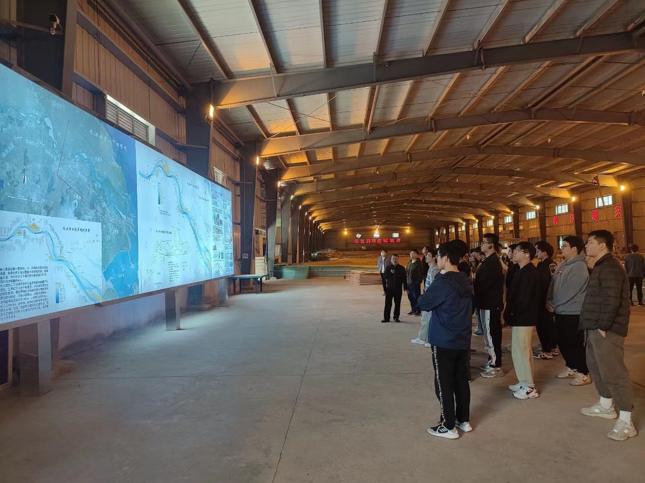 在白鹤滩试验厅,同学们目睹了大型白鹤滩物理模型,了解了白鹤滩工程概况,模型比尺及范围,现场观看了壮观的表孔、深孔泄洪过程,了解了泄洪水舌、水垫塘消能机理,对泄洪、消能、引水、尾水等各建筑物有了直观的认识和了解。