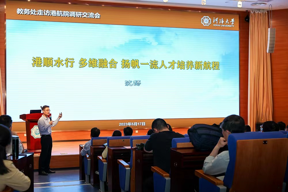 副校长、港航专业负责人郑金海教授在会上做了讲话,他指出,专业建设是学院发展的基石,近年来,港航专业作为国家级一流本科专业建设点开展了一系列卓有成效的改革,希望通过此次教务处调研走访活动,能够就新形势下,金神赌场 如何快速响应新一代信息技术革命,如何进一步深化产教融合等方面开展深入讨论,助推港航及相关专业实现全面发展。