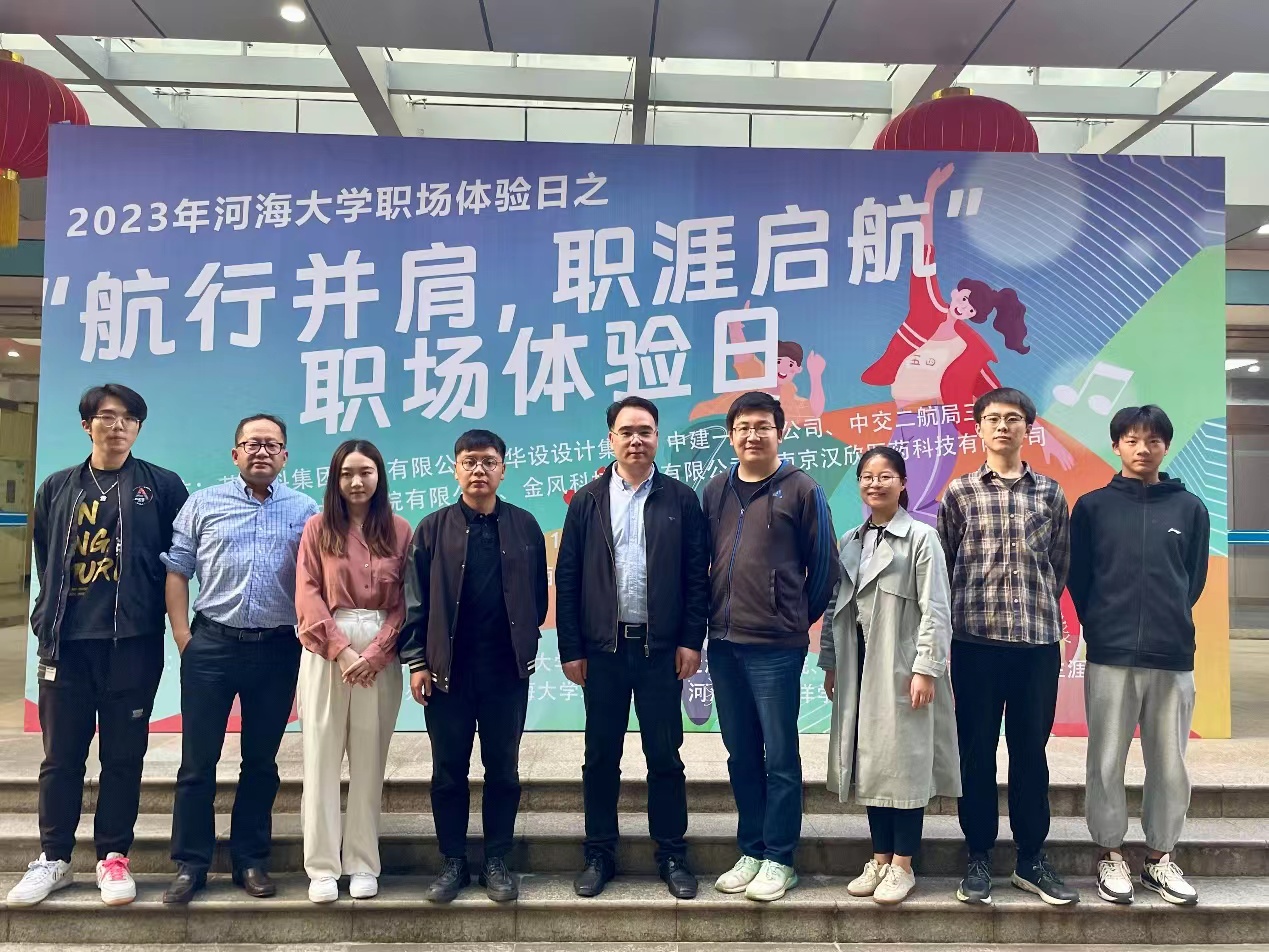 2023年5月11日下午,由河海大学学生就业指导中心、金神赌场 、“航行并肩”生涯工作室主办,由环境学院、海洋学院协办的“航行并肩,职涯启航”职场体验日活动在西康路校区严恺馆前顺利举行,邀请到苏交科集团股份有限公司、华设设计集团、中建一局一公司、中交二航局三公司、江苏都市交通规划设计研究院有限公司、金风科技股份有限公司、南京汉欣医药科技有限公司等企业参与,河海大学学生工作处副处长、就业指导中心主任赵海伟、金神赌场 党委副书记沈国军、环境学院党委副书记戴玉珍、海洋学院党委副书记吴昊等到现场指导活动,活动面向全体学生开展。