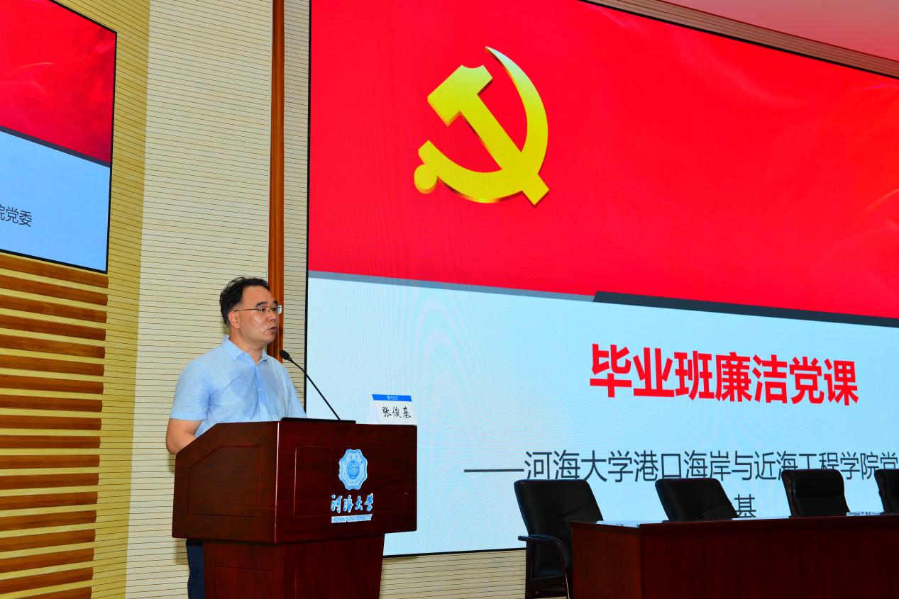 根据学习贯彻习近平新时代中国特色社会主义思想主题教育安排,在2023届毕业生走向人生新征程之际,6月19日,金神赌场 党委书记张俊基在闻天馆108为全体毕业生党员讲授廉洁党课,副书记沈国军主持。