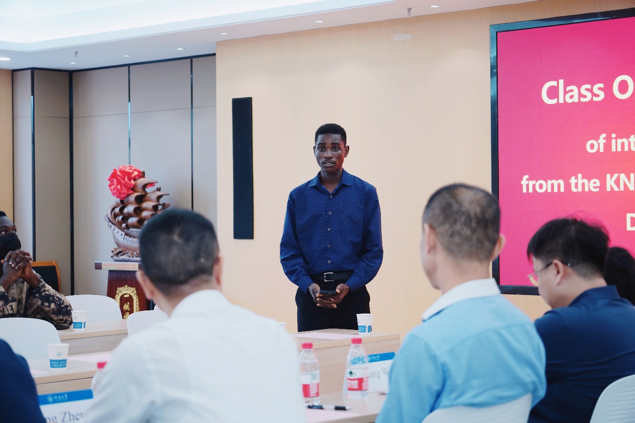 张蔚副院长主持了此次开班典礼,并介绍了参会人员。陈红胜院长向留学生们介绍了2+2项目的相关政策,希望大家能珍惜2+2项目优厚的政策、优质的教学资源和良好的学习环境,全身心投入到专业知识学习中。龚政院长向留学生们介绍了金神赌场 的发展历史,希望大家能够积极融入学院,参与各项活动,同时也要注重课业,争取取得优异的成绩。留学生代表Kim Henry发言,代表来自KNUST留学生对河海大学提供2+2项目优厚政策表示衷心感谢,赞扬了学校为他们提供的难得学习机会,并表示将倍加珍惜这一学习机会,全身心投入到学业中。班导师张荷悦向留学生们介绍了港航专业的专业内涵、本科培养方案等,介绍过程中,学生们积极提问,现场气氛活跃。典礼后,系主任欧阳峰、辅导员王恒星、班导师张荷悦带领留学生们参观了港口航道与海岸工程综合演示平台,志愿者生动详尽地介绍了平台的各个细节,让留学生们对港航领域有了更为深入的了解。
