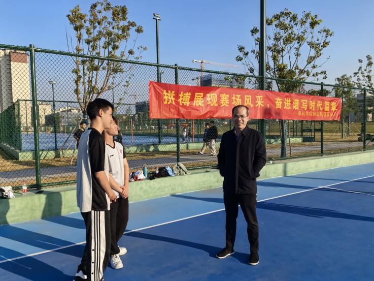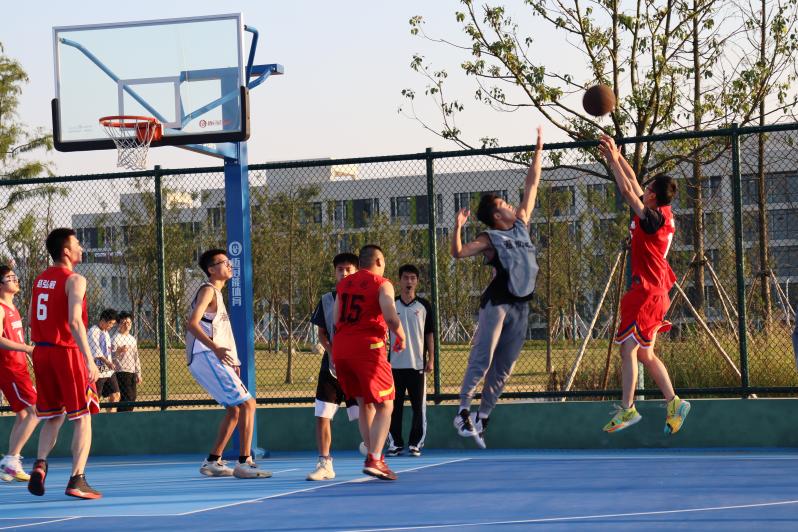 比赛开始前,郑金海副校长来到学生中间,与学生亲切交谈,了解学生在新校区的学习生活情况。下午四点十五分,随着裁判一声哨响,学院师生联谊篮球赛正式拉开帷幕。