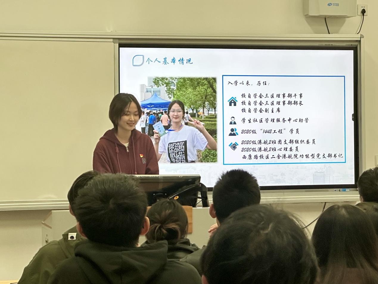 姚秋雨向同学们分享了自己在规划学涯中的心得体会,讲解了各课程学习的注意点和学习方法,罗列了同学们针对升学、出国等不同目标可以选择的目标高校和相关准备,交流了在校期间开展社会工作、社会实践、公益服务的经历。