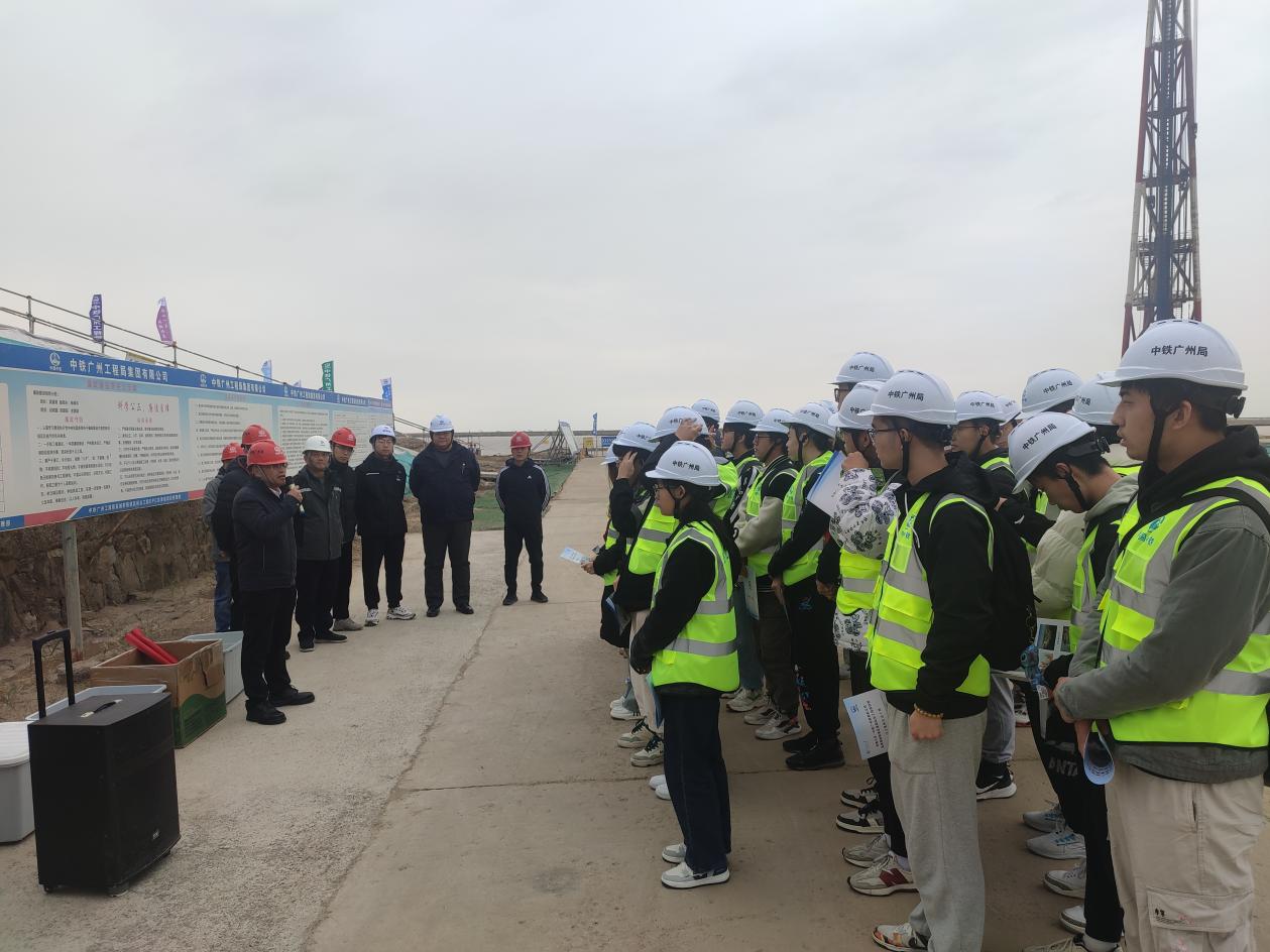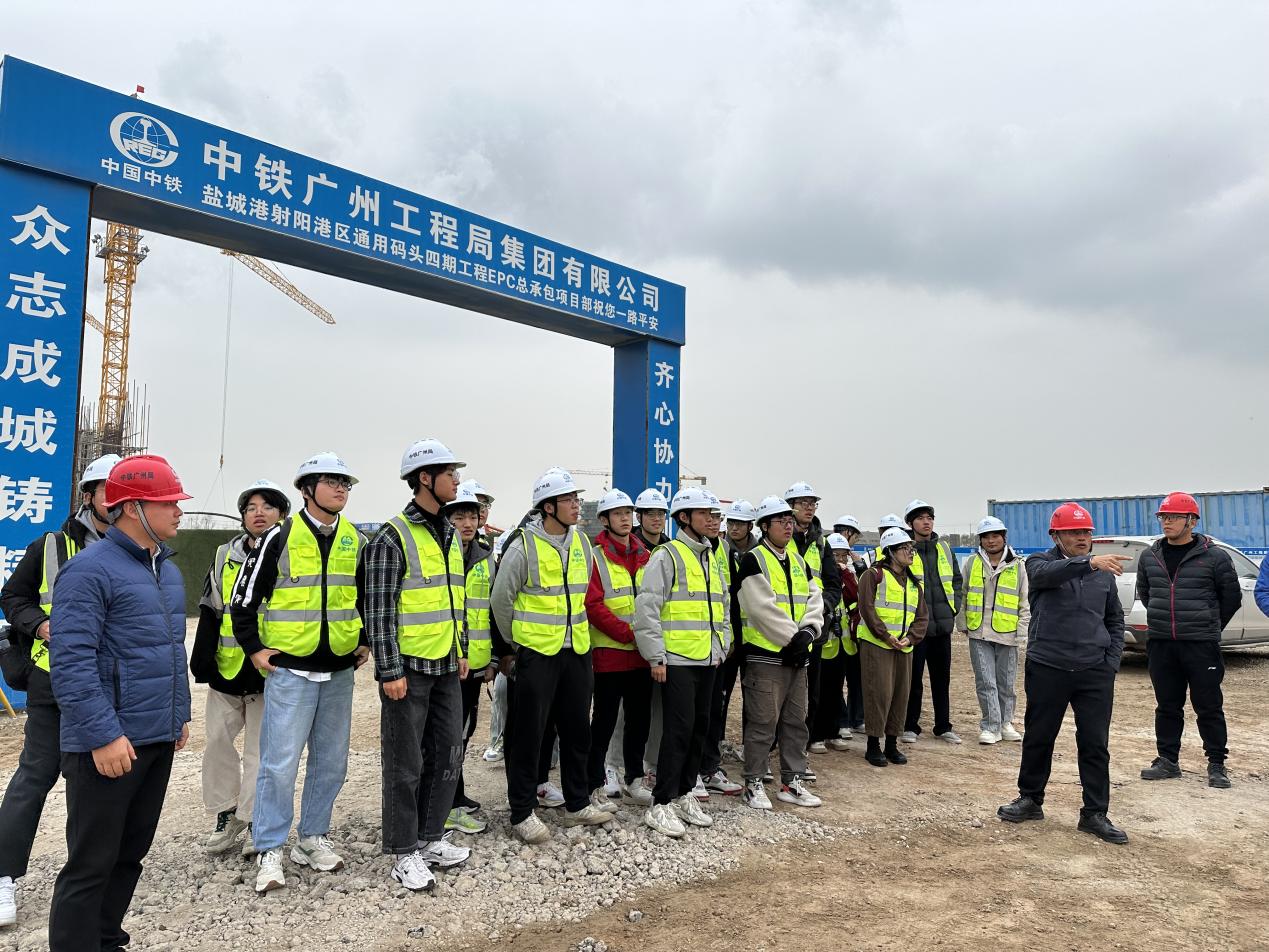 2023年11月26日,金神赌场 组织开展第3期“走访名企 接轨职场”就业实践专项活动,中铁广州局港航公司人力资源部经理任刚、项目经理杨晓平、项目书记宾建帮、项目总工程师陈建阳、项目副经理赵晓磊、盐城港项目管理公司射阳港项目负责人张宏、设计代表宋德威等带领31名2022级本科生前往盐城港射阳港区通用码头四期工程,通过探访工程现场、参观项目部、观看宣传视频、听取项目介绍、座谈互动交流等形式,帮助师生认知企业基本概况与工程建设情况。金神赌场 辅导员顾钰恒、林晨带队。