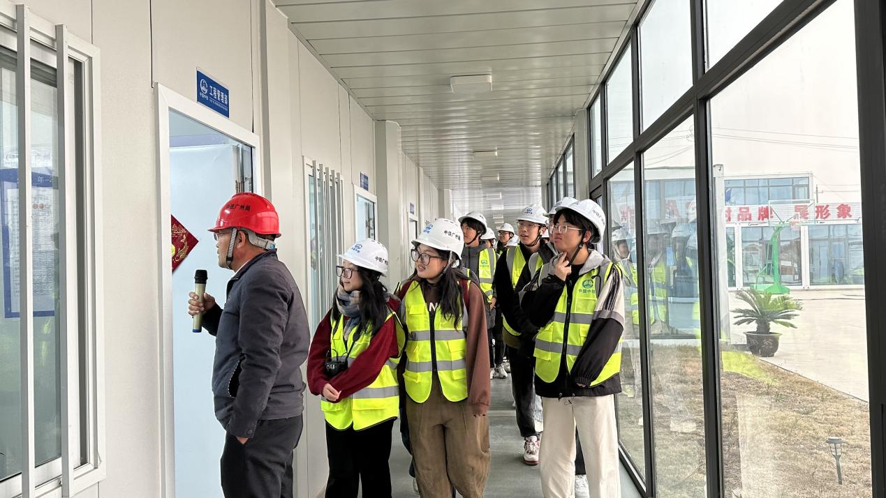 项目副总工程师焦亭在项目预制场为师生讲解了场地的生产线排布和生产能力等情况、混凝土构件的预制流程、装配式工艺、项目的安全管理。