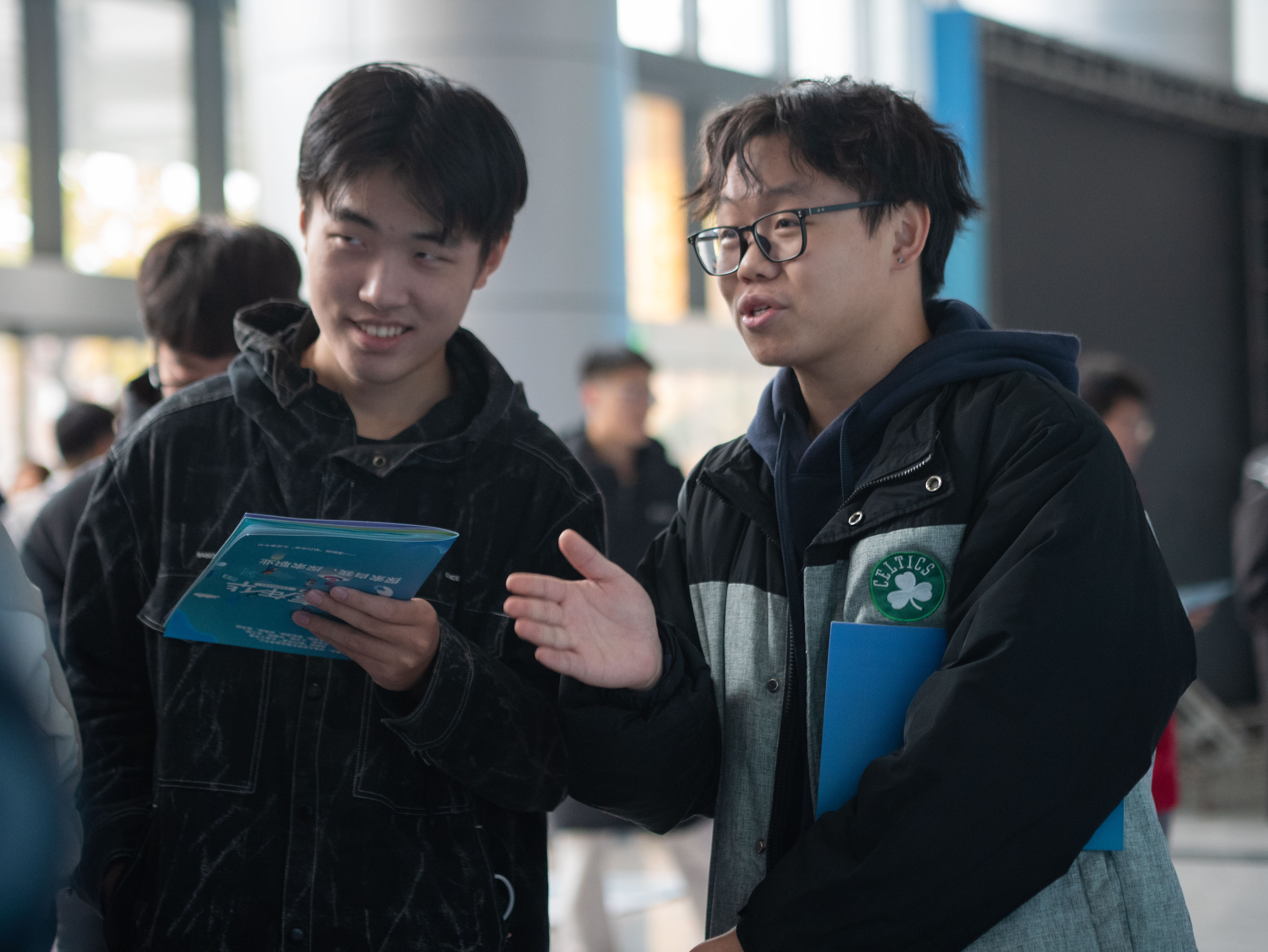 在活动起点区,同学们有序领取生涯嘉年华手册,接着便来到了活动体验区,活动区共设置4大区域,11个关卡。