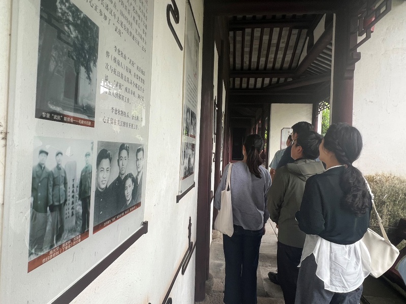 支部党员首先来到古镇中心柳亚子纪念馆。柳亚子先生是著名的爱国诗人,我国近代第一个革命文学团体南社的创始人之一。一卷卷泛黄文稿、一张张黑白影像,讲述着柳亚子先生始终举着笔杆与中国共产党人携手同行、风雨同舟的感人事迹。展厅内,毛泽东诗词《沁园春·雪》和柳亚子和词手迹,周恩来赠柳亚子的题词“铁肩担道义,棘手著文章”,更是展示了柳亚子先生为民族兴盛,为祖国富强而不屈斗争的一生。