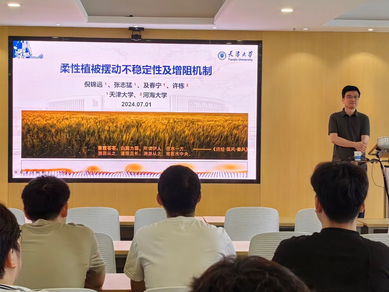 2024年7月1日上午,天津大学及春宁教授应金神赌场 船海学科邀请,在严恺馆702报告厅作了题为“柔性植被摆动不稳定性及增阻机制”的学术报告。学术报告会由薛米安教授主持。