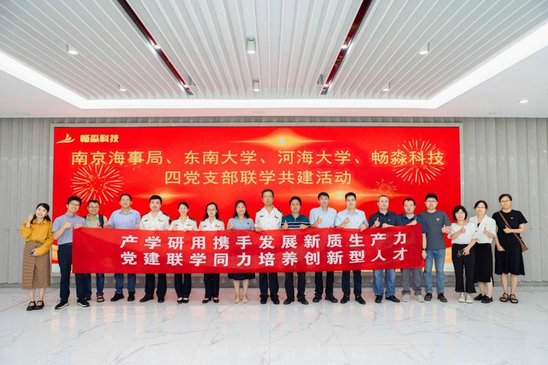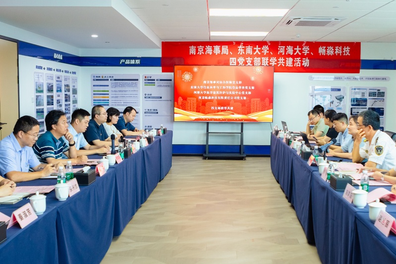7月2日下午,军港建筑与防护工程研究所、港口航道工程与海岸科学实验中心党支部在学院党委书记张雪刚带领下,与南京海事局综合保障党支部、东南大学信息科学与工程学院信息学科党支部、南京畅淼科技有限责任公司党支部共同开展了主题为“产学研用携手发展新质生产力,党建联学同力培养创新型人才”的政校企三方四党支部联学共建活动。