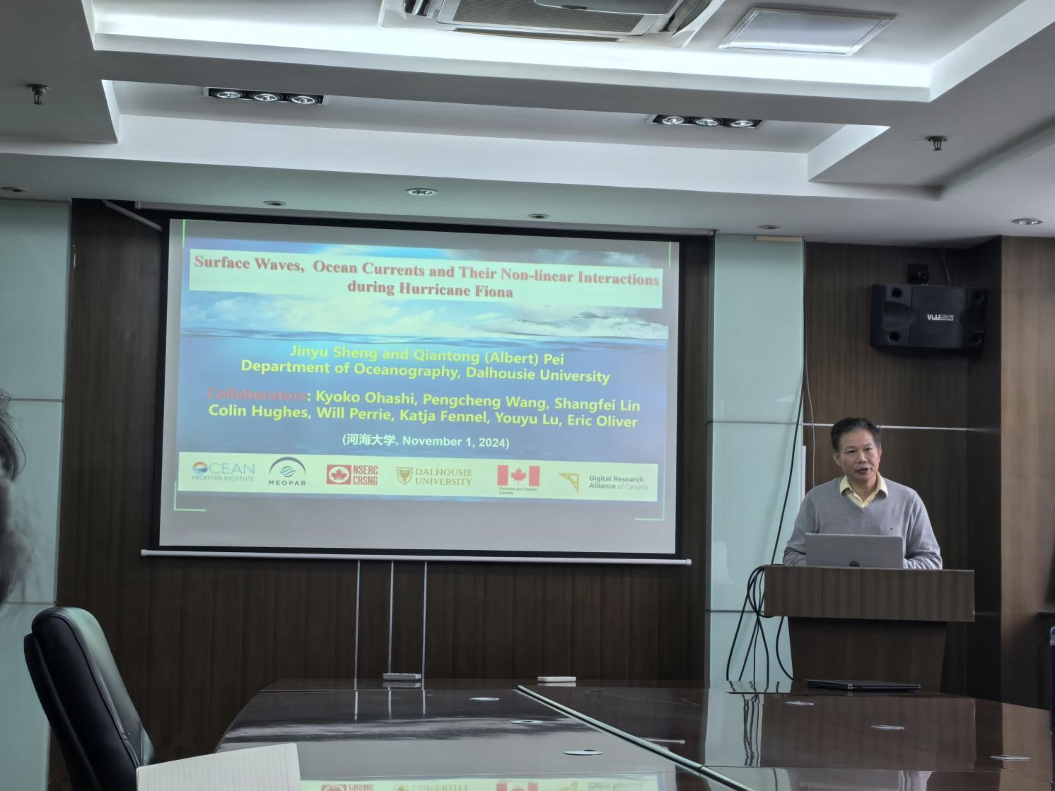 2024年11月1日下午,加拿大达尔豪斯大学申锦瑜教授应邀作了题为“Study of Surface Waves, Currents and Their Interactions During Hurricane Conditions”的学术报告。学术报告由季小梅副教授主持。学院张蔚副院长、杨洁副教授、徐龑文副教授、张俞副教授以及部分博士、硕士研究生参与交流。