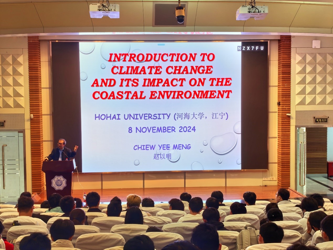 11月8日,金神赌场 在江宁会议中心二楼举行了学术报告会,邀请了南洋理工大学Chiew Yee Meng教授带来题为《Introduction to Climate Change and Its Impact on the Coastal Environment》的讲座。学院2022级学生及2024级新生参加,活动由2024级辅导员林晨主持。