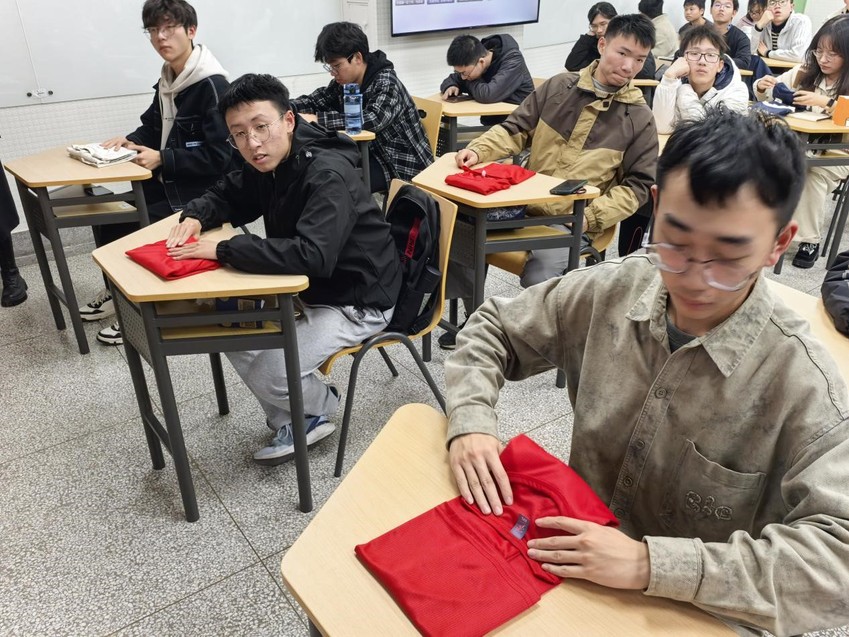 关于日常收纳衣服的方式方法,收纳师介绍了适用于不同衣服的书立式、口袋法等叠衣方法及其优点,并带领同学们多次反复练习。