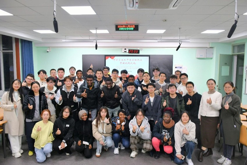 11月25日晚,学院22级港航4班全体同学与8位22级加纳班留学生联合开展主题为“中非学生从中非论坛热议中国式现代化”的交流活动。金神赌场 党委副书记王玲出席并讲授主题思政课,相关班级班导师、辅导员参加活动。