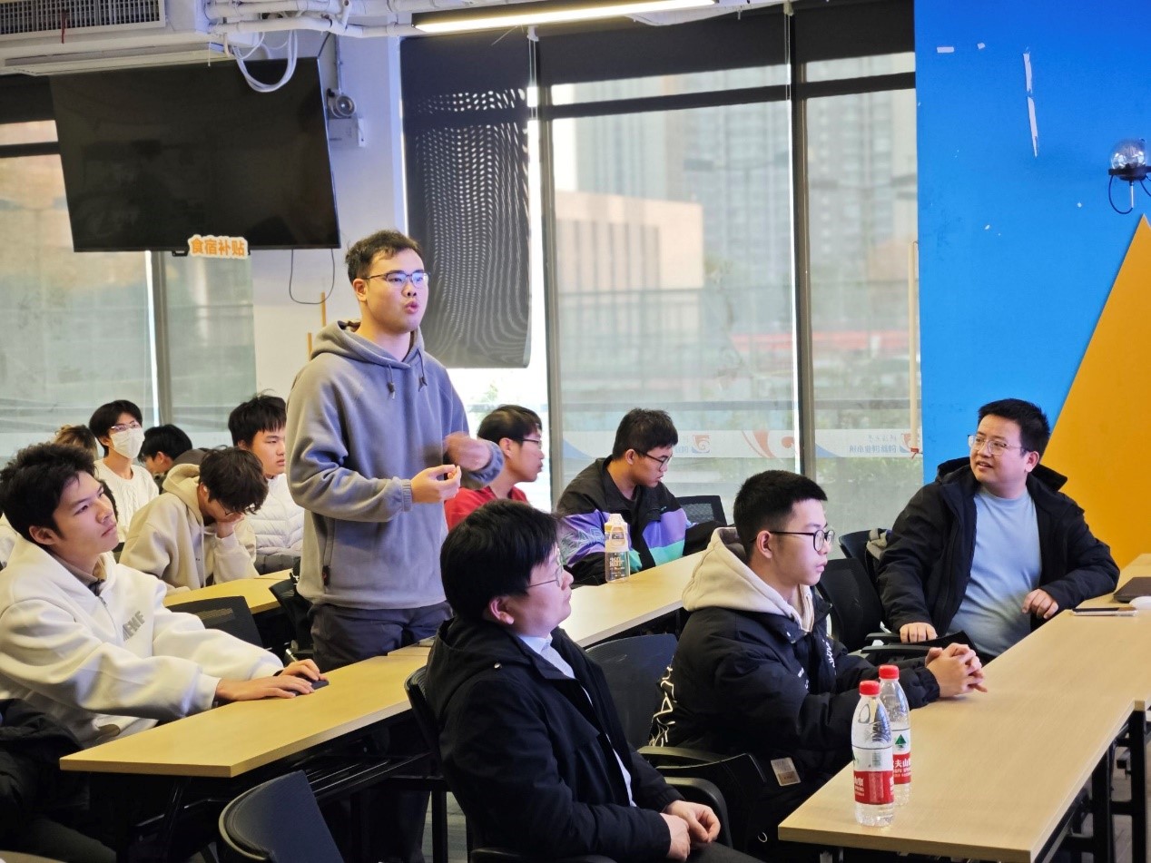 在互动交流环节,汤冬老师耐心倾听并详细解答了学生提出的智能系统在船舶工程中的应用、船海行业未来发展趋势等问题,还为学生提供了大一学习进步发展的一些建议。汤冬老师的指导不但扩宽学生的国际视野,而且为学生发展注入了新的活力。孔祥地老师则结合自己的经历分享了参与大学生双创竞赛的心得与建议,帮助同学们对科研双创以及大学生活有了更深刻的理解和认识。与会同学们积极提问,与老师们进行了深入的互动交流,共同探讨了船舶与海洋工程领域的热点问题和挑战。