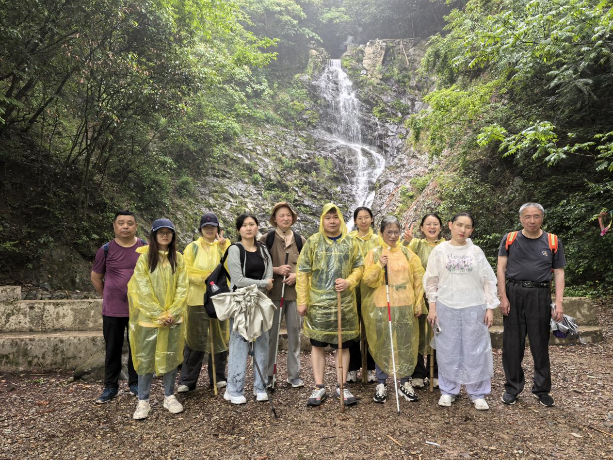 5月15日上午10点,志愿者与视障朋友们携手踏上徽杭古道。虽道路曲折,山路难走,但在志愿者的悉心指导下,视障朋友们感受古道的沧桑与厚重,聆听山间潺潺流水与清脆鸟鸣。历经八个多小时,徒步16.89km,最终抵达浙江界结束了一天的行程。行进过程中,志愿者们时刻关注视障朋友的状态,紧紧搀扶着他们,耐心提醒:“前面有台阶,您小心抬脚”“下雨了石板路有点滑,您慢点走”。