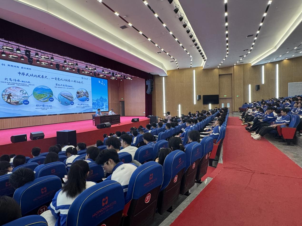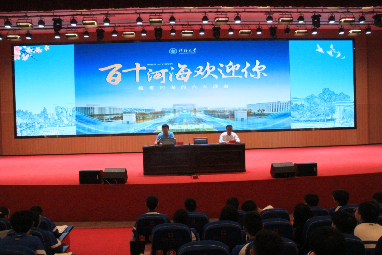招生组成员林晨基于中华民族治水史和中国水利高等教育史,为同学们介绍了河海大学百十年来因水而生、缘水而为、顺水而长的发展历程,讲述了河海人投身国家建设的使命担当。然后,林晨介绍了河海大学的实验室及创新平台资源,具体分析了河海大学水为特色,工科为主,多学科协调发展的战略布局。最后,林晨阐释了河海大学的雄厚师资、人才培养方案、高质量就业情况,具体介绍了校区分布、课外活动、科创项目等校园生活,吸引广大高中生报考河海大学。