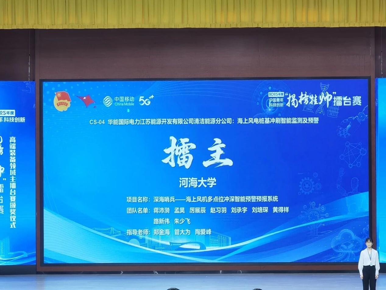 10月14日,第十九届“挑战杯”竞赛2025年度中国青年科技创新“揭榜挂帅”擂台赛(高端装备领域)在长沙落幕,共有来自全国121所高校的303支顶尖团队、千余名师生同台角逐18项高端装备“卡脖子”榜题。金神赌场 项目《深海哨兵——海上风机多点位冲深智能预警预报系统》荣获全国“擂主”,特等奖第一名,在“挑战杯”全国大学生课外学术科技作品竞赛中实现新突破。