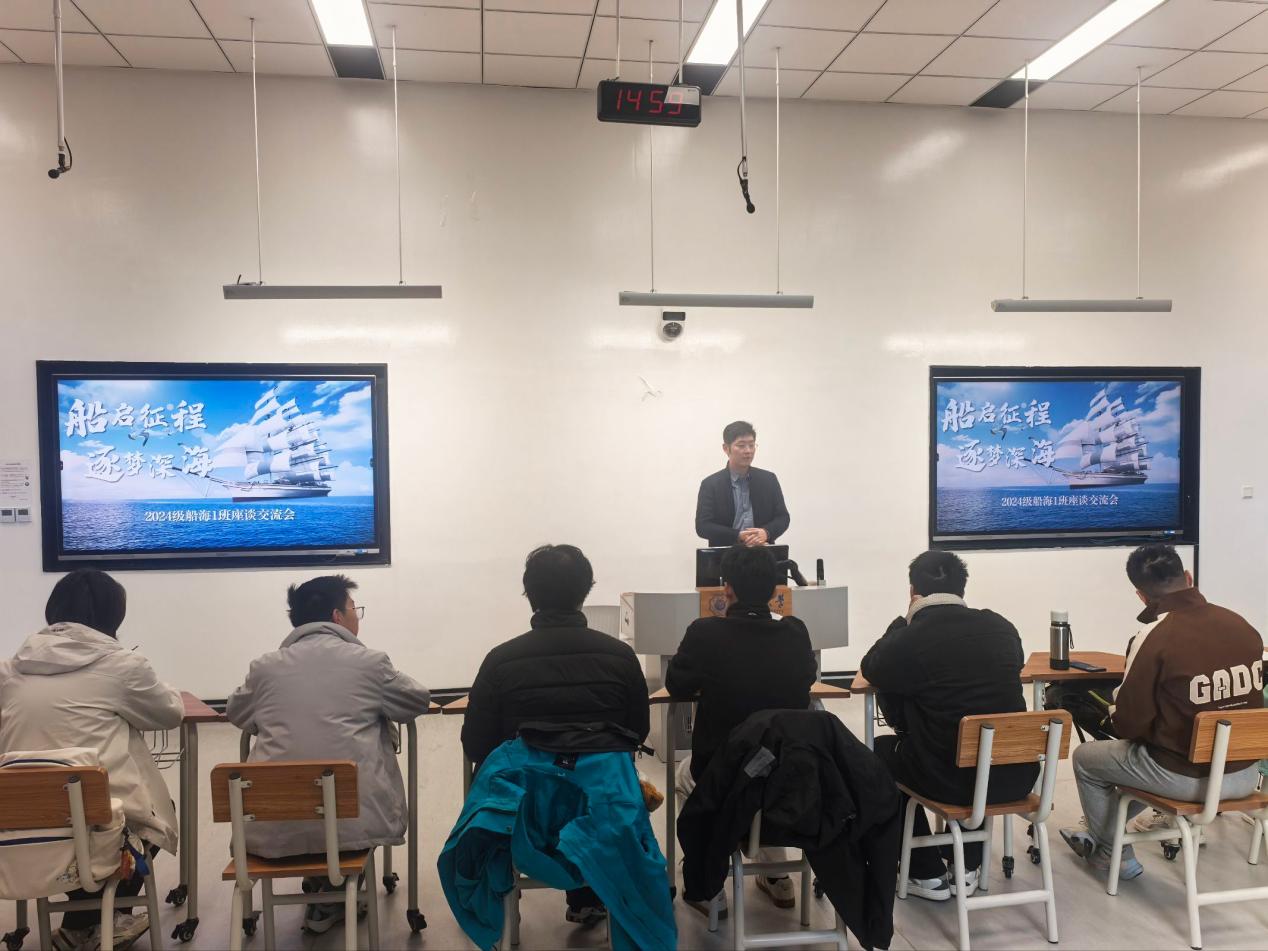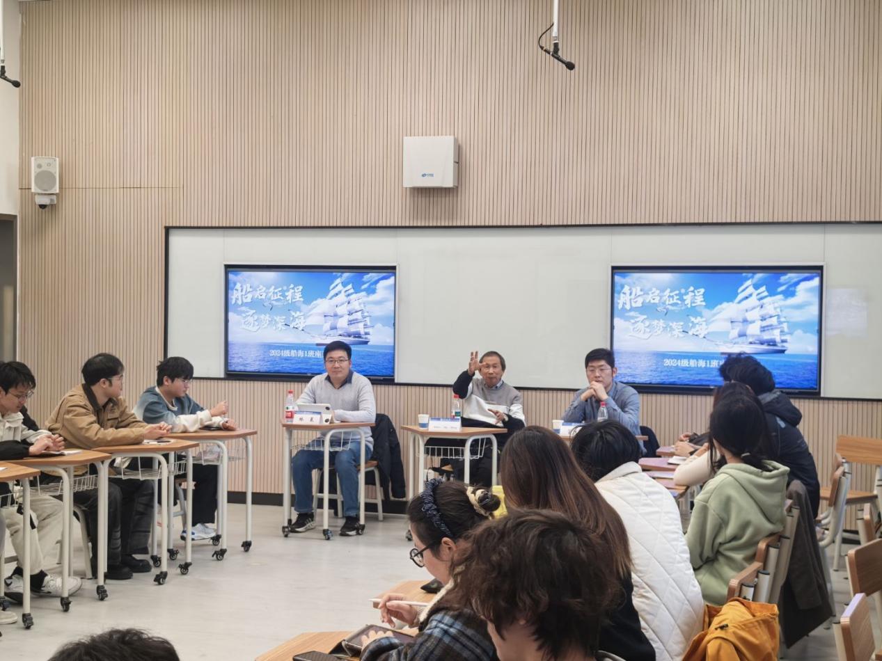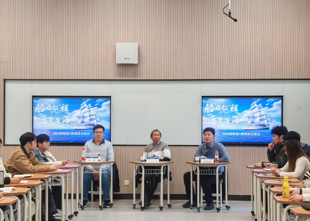 12月3日,领导干部联系学生座谈会暨学术报告会在常州校区2号楼E104举行,金神赌场 副院长管大为、南洋理工大学Chiew Yee Meng教授、辅导员林晨和2024级船海1班全体同学参加。