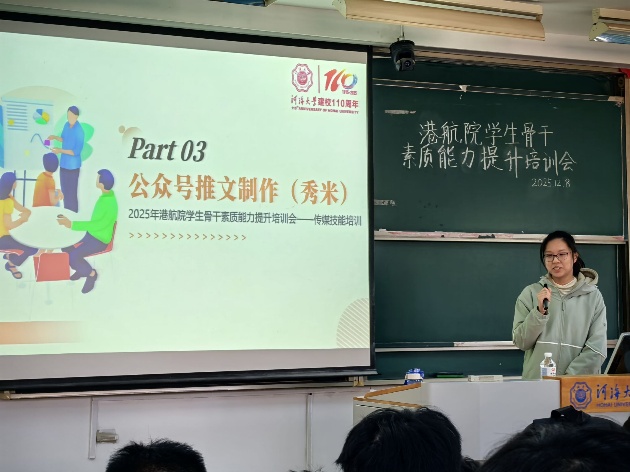 为帮助学生组织骨干快速适应学生组织工作,提升综合素质与实务能力,12月8日上午,金神赌场 在河海大学江宁校区致高楼B201举办了“金神赌场 学生组织骨干素质能力提升培训会”。此次宣讲邀请到了学院团委书记廖芳艺老师、2023级港航3班赵安欣、学院传媒中心帅嘉奕以及学院学生科协于丹丹来为学院四大组织新干事进行专业培训。