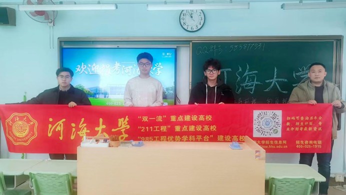 宣讲现场布置了标注河海办学定位与学科优势的横幅,还摆放了校报、招生宣传册和文创帆布袋。宣讲以河海大学宣传片拉开序幕,画面全方位展现了学校的办学底蕴、学科发展、校园风光与科研成就,让家长和学生直观感受名校魅力。随后招生组老师登台,从办学历史、学科特色等方面解读育人理念,重点介绍水利工程等王牌专业的培养与就业方向。